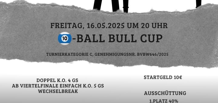 Link zur Anmeldung über die Tournamentapp: 10-BALL BULL CUP 2025...
